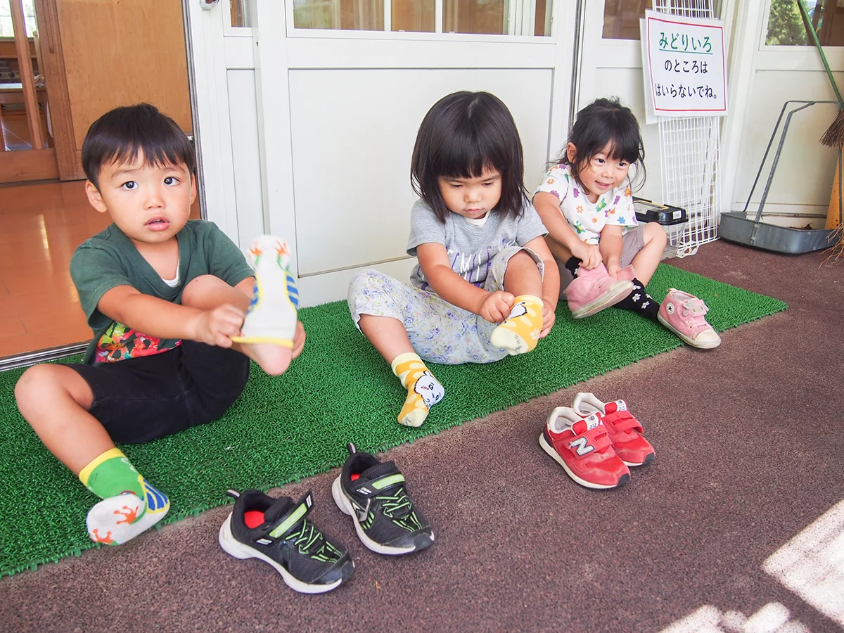 園生活に慣れ、身の回りのことを自分で進んで取り組むようになります。様々な行事や日々生活の中での関わりを通じて友だちとの距離が縮まり、時にケンカもしながら一層仲を深めていきます。