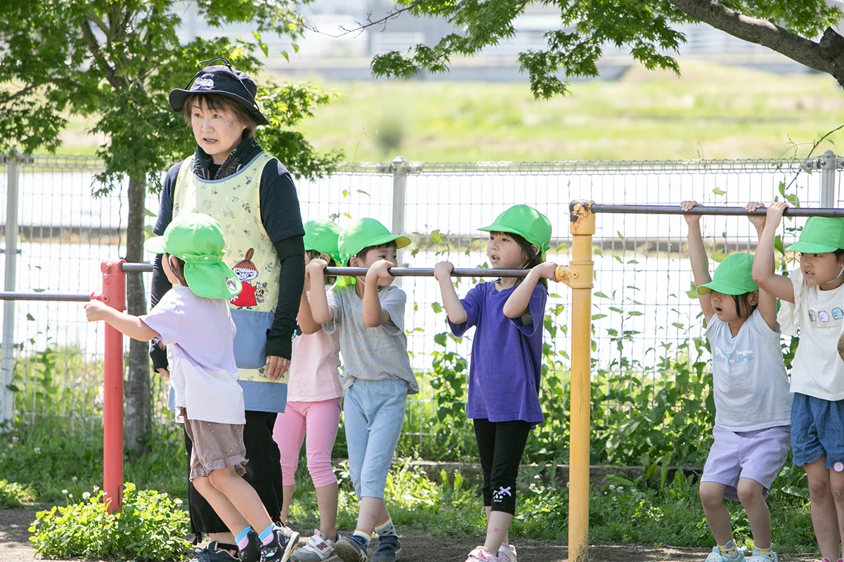 保育士との信頼関係を土台にして初めての環境や人への関わりを少しずつ広げていきます。