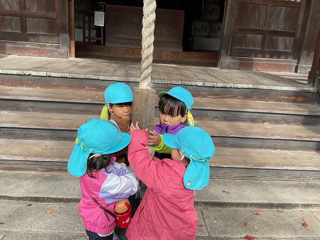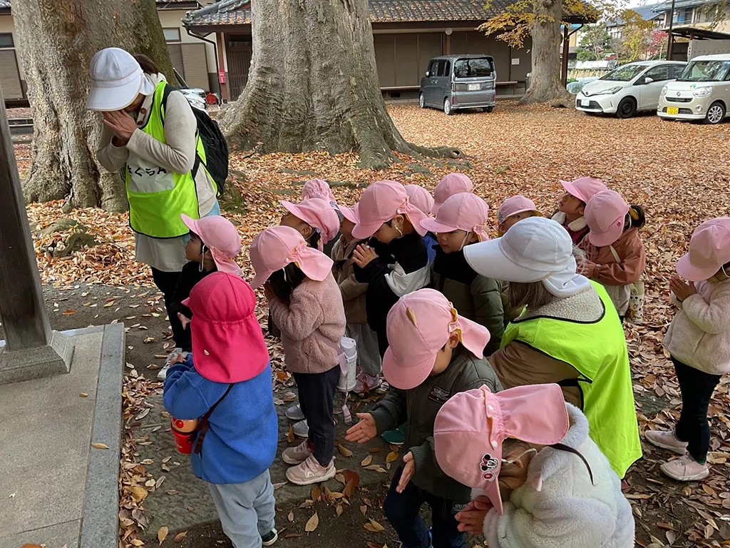 保育園から歩いて原のお宮と成田山薬師寺へお参りに行きます。